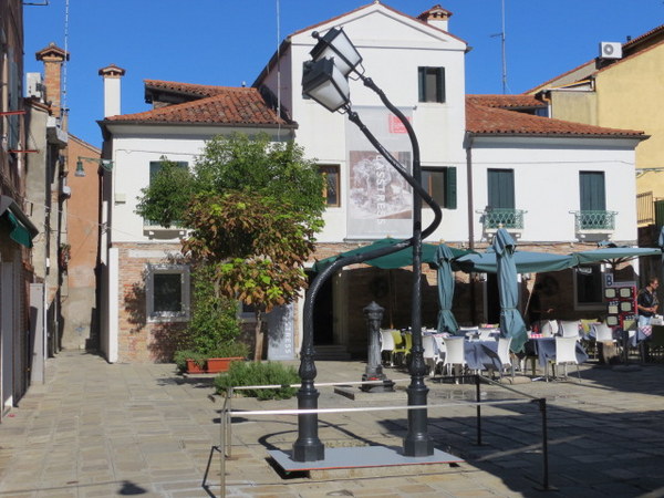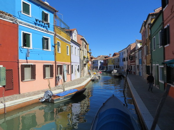 While there are a couple of dining options on Torcello, we headed to Burano, famous for lace and for the beautifully colored houses. We find Burano enchanting, except for the “barkers” in front of the restaurants on the main piazza. Avoiding these, we chose Ristorante al Vecio Pipa, where the owner oversees everything personally and does not resort to waving people in. He doesn’t have to. We had a decidedly unhealthy but delicious lunch of fried seafood (fritto misto di pesce) and grilled polenta. Unlike in the U.S., there is a light hand with the batter, if you can even call it that, and there are no French fries, thank God. Luckily we walked for hours that day.
