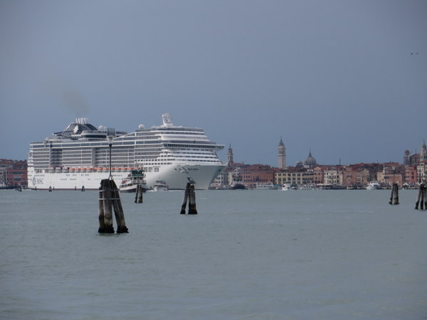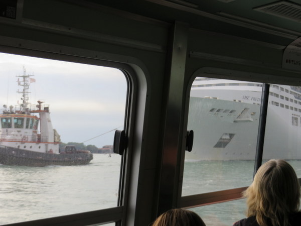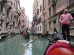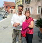 When one thinks of dining in Venice, euro signs flash before your eyes. It can be expensive, but there are places the Venetians dine – real people do live here – and these local places are easier on the budget. In “our” neighborhood, we always dine one night at the convivial and unpretentious Pizzeria NoNo Risorto. Venice is more traditionally fish than pizza, but NoNo does some creative pies, and with i ragazzi (the guys) hanging out, the atmosphere was lively. Ric chose an extraordinary pizza frutti di mare, which was a crust with sauce, no cheese, piled high with baked seafood, some still in their shells: clams, mussels, shrimp and calamari. The seafood was delicious, baked right on the pizza, but it left him with what amounted to tomato sauce on bread as a base. My choice was the “Maurwulf,” with salami piccante and gorgonzola. I gave Ric a share, but my goodness, it was difficult to part with those pieces. Yum! House wine is a bargain, a good way to save some euros.