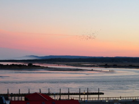 Sunrise view of the Coquille River, Bandon, from the Bandon Inn.