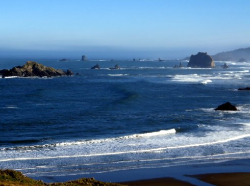 Offshore islands at Port Orford Heads. This is a terrific whale watching viewpoint. See the “henge” far out to sea?