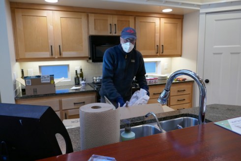 Ric unpacking the kitchen.
