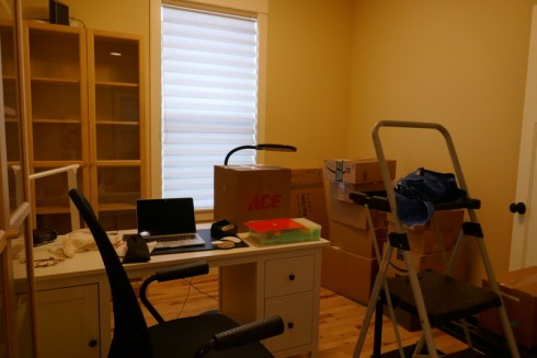 My “office.” Awaiting a desk and cabinet.