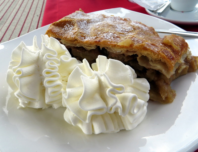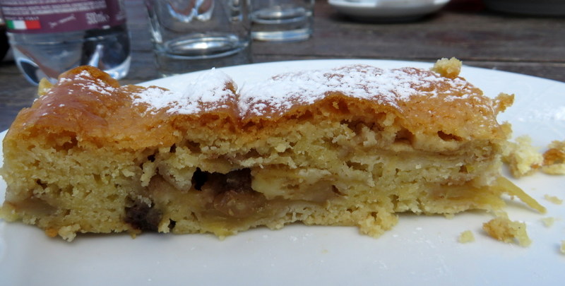 This rifugio was under major renovation and I feared would be out-of-service. Luckily, in the spirit of true mountain hospitality they had table service and freshly-baked strudel as well as a sparkling clean facility. Retracing our steps on this out-and-back hike we found climbing the steep sections of paving stones much easier than descending them. This was a 4h:10m hike altogether, with a ½ hour stop at the rifugio and a couple of brief water/rest stops along the way.